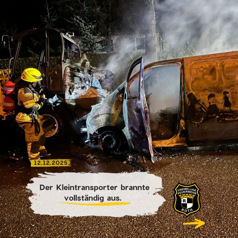 In den Morgenstunden kam es zu einem Unfall auf der Münchener Straße in Folge dessen zwei Fahrzeuge ganz oder teilweise ausbrannten. Ein Kleintransporter fuhr aus unklarer Ursache auf einen ordnungsgemäß abgestellten Radlader – beide Fahrzeuge fingen Feuer. Unter schwerem Atemschutz konnten wir den Brand schnell eindämmen. Die ausgelaufenen Betriebsmittel banden wir in der Folge ebenfalls ab. Letztlich zog sich der Einsatz aber durch die aufwändige Bergung und die notwendige Reinigung der Straße bis in die Mittagszeit – die Münchener Straße musste aus diesem Grund leider bis kurz vor 13 Uhr gesperrt werden.